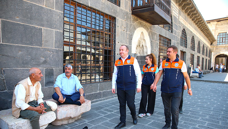 Bu kapsamda merkez Sur ilçesindeki tarihi Ulu Cami'ye gelen yerli ve yabancı turistleri karşılayan ekipler, turistlere hem güvenlik hem de rehberlik hizmeti sundu.