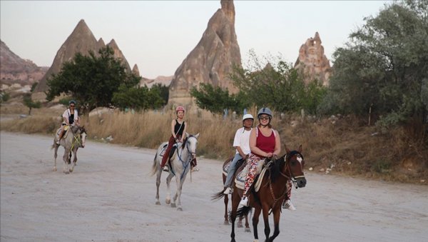Valilikten yapılan açıklamaya göre, peribacaları, sıcak hava balonları, yer altı şehirleri, kayadan oyma otel ve kiliseleriyle ünlü Kapadokya bölgesindeki merkezleri, yılın 8 ayında 3 milyon 53 bin 827 yerli ve yabancı turist ziyaret etti.