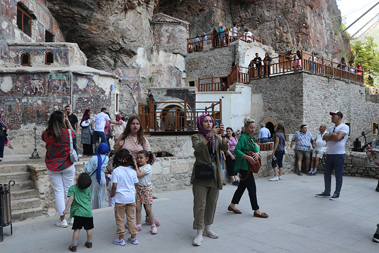 Doğa, tarih ve kültürü bir arada sunan Sümela Manastırı, her dönem olduğu gibi bayram tatilinde de yerli ve yabancı turistlerin ilgi odağındaydı.