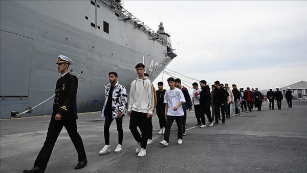 Türk Silahlı Kuvvetlerinin en büyük savaş gemisi, yerli ve milli üretim TCG Anadolu'yu görmek için limana gelenler, saat 10.00'dan itibaren güvenlik kontrolünden geçti.