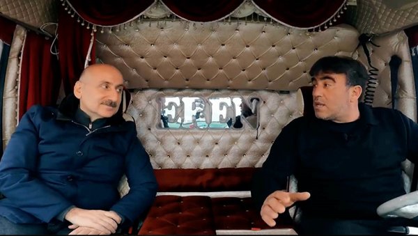 Seyahat sırasında ise kamyon sürücüsü köprünün ve yolların sağlayacağı faydaları anlatıyor.