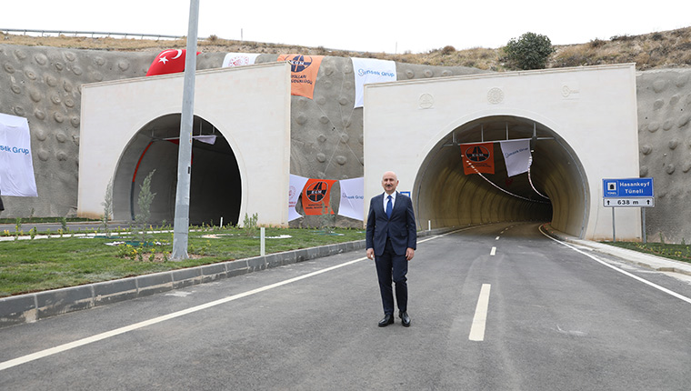 Ulaştırma ve Altyapı Bakanı Adil Karaismailoğlu, 638 metrelik çift tüplü Hasankeyf Tüneli'nin bağlantı yolları ile birlikte 2 kilometre uzunluğunda olduğunu belirterek "Söz konusu güzergahın tamamının hizmete girmesiyle Batman, Mardin ve sınır kapılarına yüksek standartlı, hızlı ve konforlu bir ulaşım sağlanmış olacaktır." dedi.